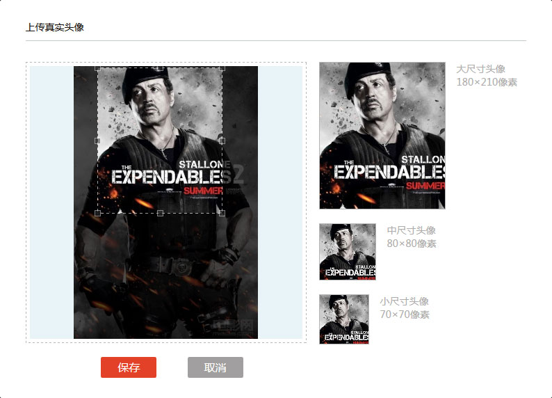 用js來做這個效果,先得將圖片A上傳到服務器,關於異步上傳的插件有很多,不用插件也可以參考本人上一篇博客用純js的方式上傳,上傳之後顯示到頁面裡,由於上傳的圖片尺寸各不相同,要完整地顯示圖片,就要將上傳後的圖片用css控制按比例縮放顯示,然後通過矩形選框選擇需要的部分,用js獲取矩形選框的左上角坐標,加上選框的寬高按比例計算後傳給後台,後台程序根據所傳參數來裁切得到圖片B後返回到前台並將上傳的原圖A刪除,節省空間。