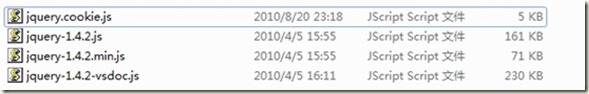 我們在使用的時候將Jquery-1.4.2.js和jquery.1.4.2-vsdoc,js放在一起,其實vsdoc.js是對於前面的解釋說明,它是讓我們在編寫代碼的時候可以點操作出來。