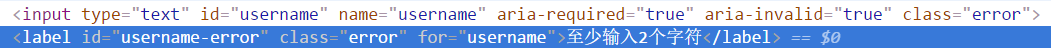 實際上,validate插件輸出錯誤信息的方式是通過增加一個label控件實現的,該label控件的id名為'輸入控件的id名-error',類名為'error',且位於輸入控件的右側