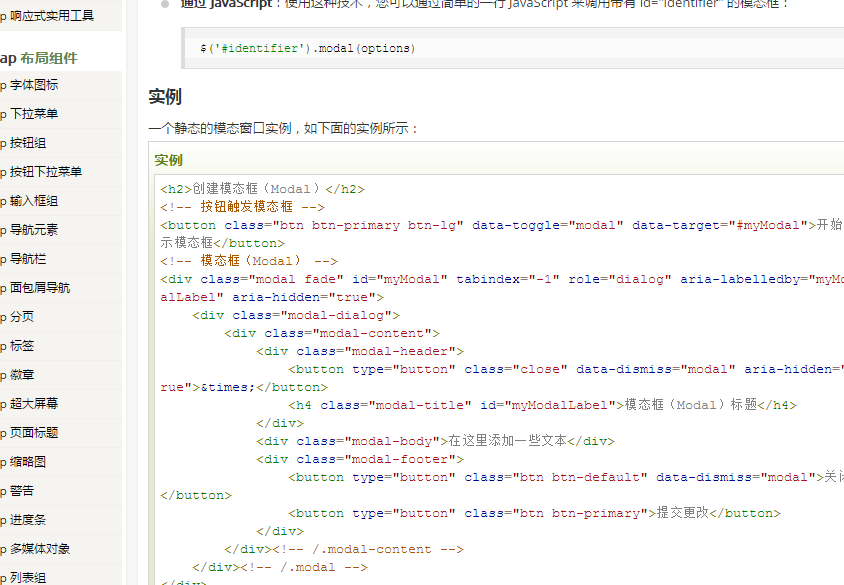 3.去bootstrap裡面找到模態框,復制,黏上就行了;