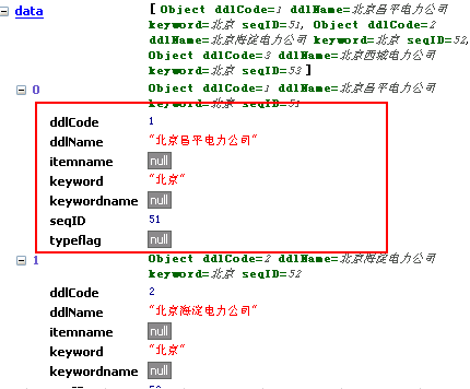 這裡使用正則表達式攔截一個或多個ddlCode和ddlName,這樣json數據中就只含有ddlCode和ddlName了。