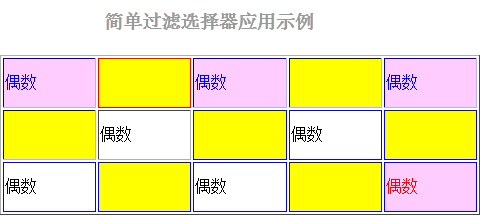 實例: 代碼如下:$("td:odd").css("background", "red");