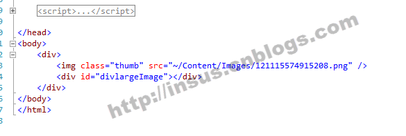 標記2,添加htm代碼,原片顯示以及放大圖片的占位div標簽: