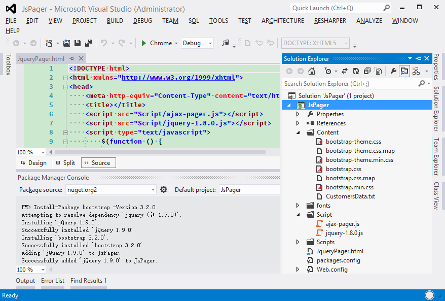 $('#dvPager').html(pager(pageSize, pageIndex, pageCount, 'CustomersData.txt'));