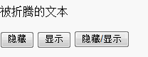 網頁中有如下三個按鈕,一個只能隱藏文本,一個只能顯示文本,一個同時能隱藏與顯示文本,點擊一下顯示,再點擊一下隱藏,無限循環。如下圖所示: