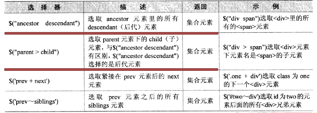 例:$(“div>span”)選取<div>元素下元素名是<span>的子元素.