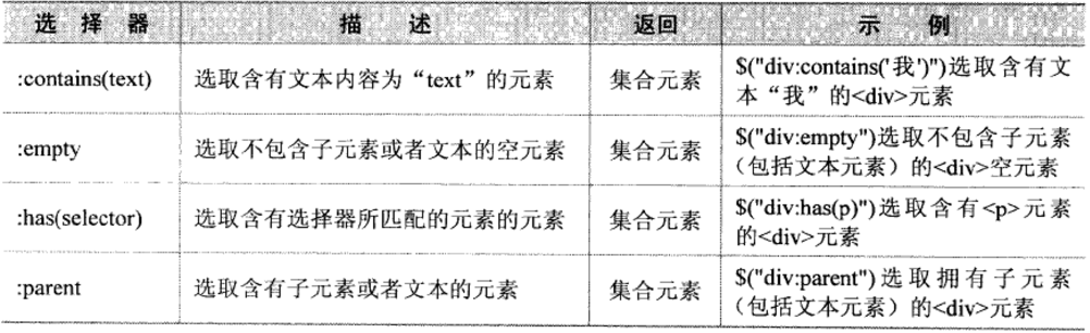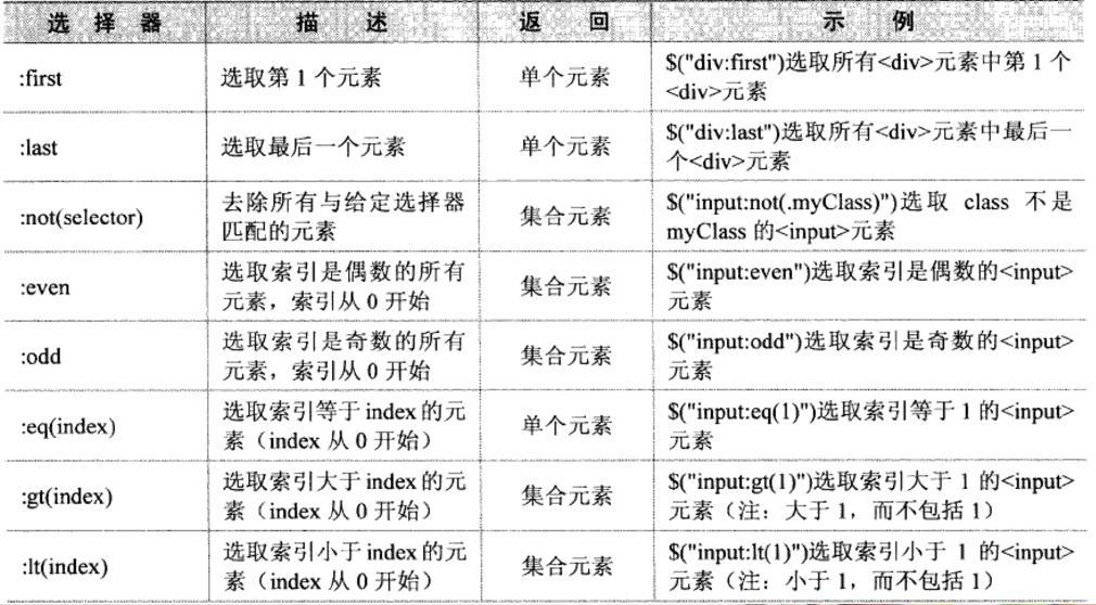 基本過濾;內容過濾;可見性過濾;屬性過濾;子元素過濾;表單對象屬性過濾.