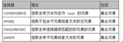 內容過濾選擇器的過濾規則主要體現在它所包含的子元素和文本內容上