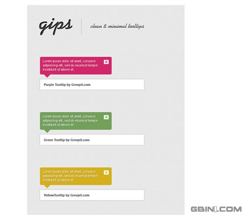 一個超干淨整潔的工具提示jQuery插件,基於Gips的免費素材