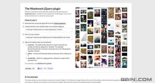 一個仿制wookmark.com的網格布局jQuery插件,它可以幫助你動態的布局列元素