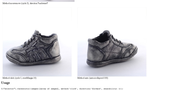 The 360 degree Javascript viewer 是個 jQuery 插件,用來展示一個漂亮的 360 度圖像旋轉效果。在線演示