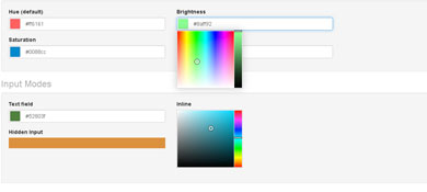 可以實現點擊後彈出顏色庫,然後,我們可以隨意選擇自己喜歡的顏色的代碼,大家可能遇到過這樣的需求,網站發布的文章,根據情況不同,需要給這篇文章不同顏色的標題.曾經還有人留了一個表單然後打開dw或者photoshop查找顏色代碼.然後把代碼填寫進去.用這麼繁瑣的一個過程來實現不同文章的不同顏色.不過這一款jquery插件就能讓你不用那麼麻煩的去查找顏色代碼,直接客觀的找到你要的顏色,並且能及時的返回到你的輸入框內.你需要做的就是把選擇好的顏色代碼存入數據庫即可.