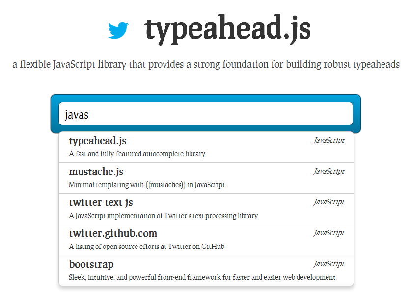 上圖效果可以使用jQuery插件Typeahead.js來實現,這款jQuery插件來自於Twitter的一個新的項目,支持遠程和本地的數據集。比較有特色的地方在於你可以將數據集使用本地存儲(local storage)來保存在本地,有效的提高用戶體驗。同時也擁有很多遠程數據集的處理選項,例如(請求頻率,最大的並發請求數,等等)。