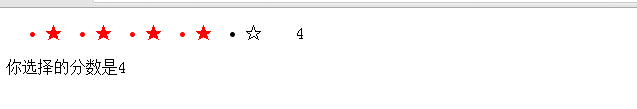 <body> <div id="div"> <ul> <li>☆</li> <li>☆</li> <li>☆</li> <li>☆</li> <li>☆</li> </ul> </div> <p id="p"></p> <p id="score"></p> </body>