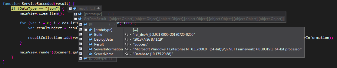 resultCollection.add(resultObject.ServerName, resultObject.DeployDate, resultObject.Build, resultObject.Result, resultObject.ServerInformation);