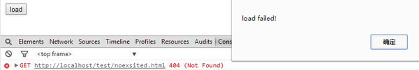最常用的方式是全局的 ajaxError 方法,以上例為例,如果我們像一個不存在的頁面發送數據請求: