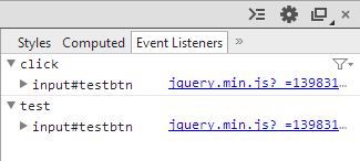 var event = lookEvents($("#testbtn")[0]); // 獲取綁定的事件