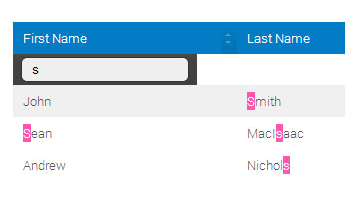 <p>To make a table searchable, add the class 'table-sort-search' to the <table> tag.<br/>