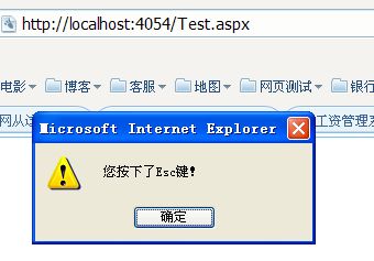 $(document).bind("keydown", "esc", function (ev) { alert("您按下了Esc鍵!"); //其它處理事件; return false; })