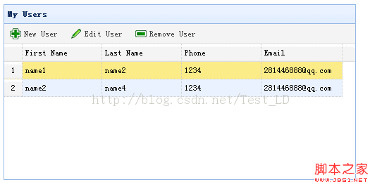 <table id="dg" title="My Users" class="easyui-datagrid" style="width:500px;height:250px"