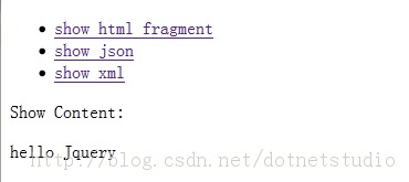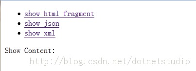 點第一個超鏈接會在Show Content區域顯示新插入的html片段