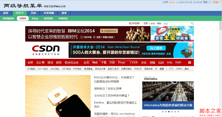 <title>兩級導航菜單的示例</title>