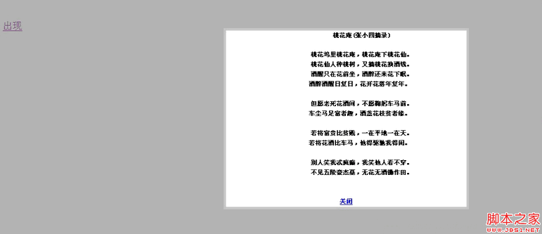 <a href="javascript:showDiv('popDiv')" style="font-size:20px;margin-left:100px">出現</a>