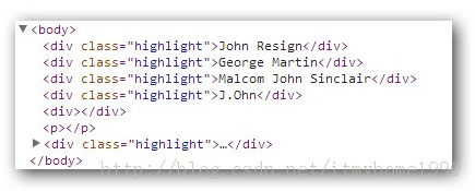$("div:contains('John')").addClass("highlight"); //查找所有包含 "John" 的 div 元素