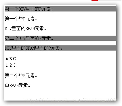 <p id="p4">DIV裡面的SPAN裡面的P元素。</p>