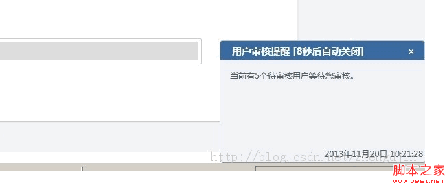 msgDiv.show("用戶審核提醒", msg, 10000);
