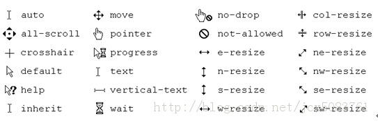1、浏覽器自帶的鼠標樣式:
