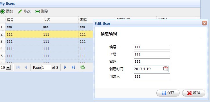 初識Jquery EasyUI看了一些博主用其開發出來的項目,頁面很炫,感覺功能挺強大,效果也挺不錯,最近一直想系統學習一套前台控件,於是在網上找了一些參考示例。寫了一些基本的增刪改查功能,算是對該控件的基本入門。後續有時間繼續深入學習。