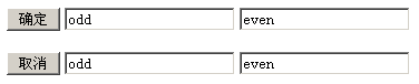 <span style="white-space:pre"> </span><input type="button" value="確定" /> <input type="text" value="odd" /> <input type="text" value="even" />