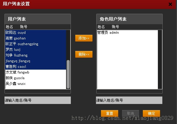 我的雙向選擇器支持批量修改角色,支持關鍵字查詢角色信息。下面奉上源碼: