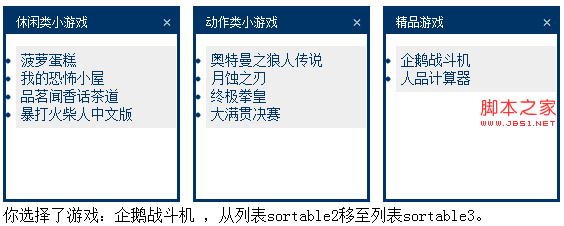 $('.selector').sortable(options); 簡單實例:
