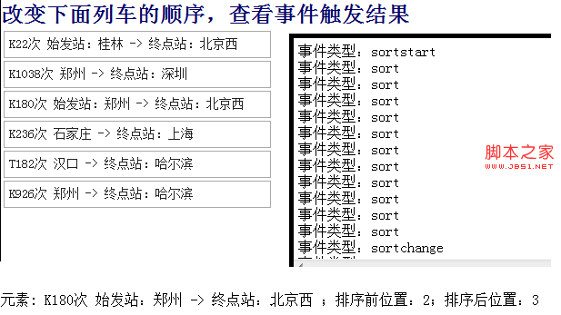 <h1>改變下面列車的順序,查看事件觸發結果</h1>