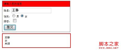 性別:<input id="Radio1" name="rdoSex" type="radio" value="男"/>男