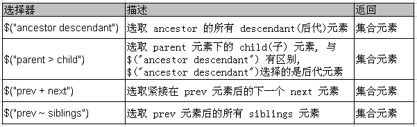 如果想通過 DOM 元素之間的層次關系來獲取特定元素, 例如後代元素, 子元素, 相鄰元素, 兄弟元素等, 則需要使用層次選擇器.