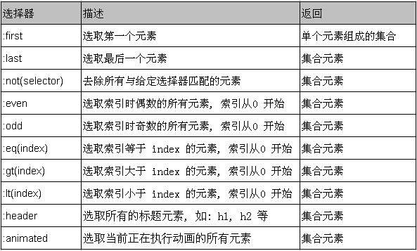 過濾選擇器主要是通過特定的過濾規則來篩選出所需的 DOM 元素, 該選擇器都以 “:” 開頭