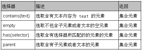 內容過濾選擇器的過濾規則主要體現在它所包含的子元素和文本內容上