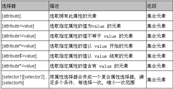 屬性過濾選擇器的過濾規則是通過元素的屬性來獲取相應的元素