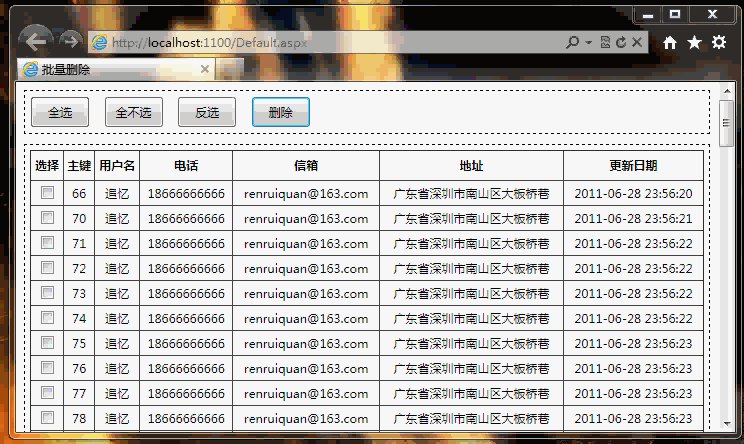 我不知道實際開發中有沒有用到這種效果,但我個人認為,這種方式更人性化,因為只要點到一行,就可以使CheckBox.checked=true; 不用非得點復選按鈕才能實現;