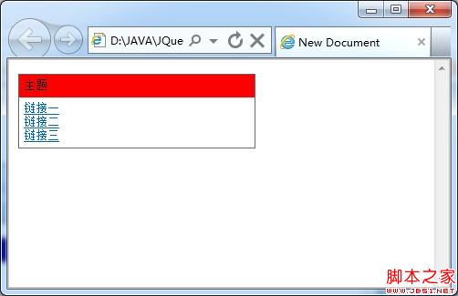 在頁面中,有一個<div>標記,在該標記內,包含二個<div>標記,一個為主題,另一個為內容,頁面首次加載時,被包含的內容<div>標記是不可見的,當用戶單擊主題<div>標記時,改變自身的背景色,並將內容<div>標記顯示出來。