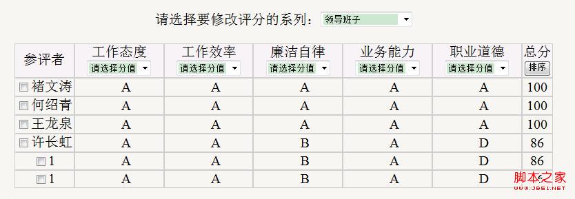 當我們改變某一個人或某幾個人的某項分值實現無刷新寫入數據庫。