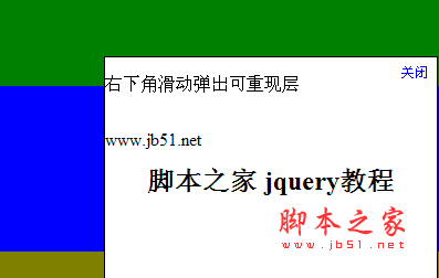 jQuery 右下角滑動彈出可關閉重現層完整代碼