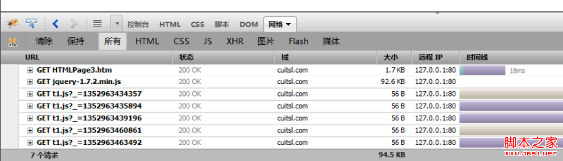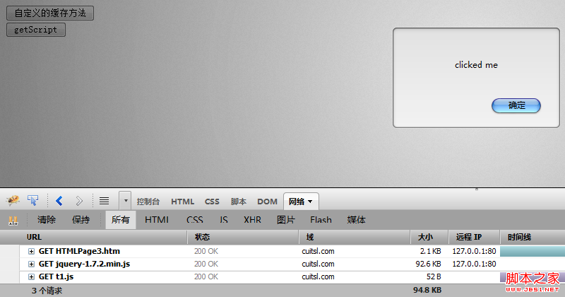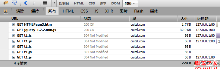 到這裡,整個改造就完成了,當你使用這個功能的時候,只會在初始化的時候向服務器發出一次js的請求,而加載完成後,就不會再次請求服務器了,哪怕是304狀態碼也不會有了。