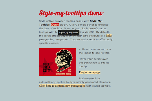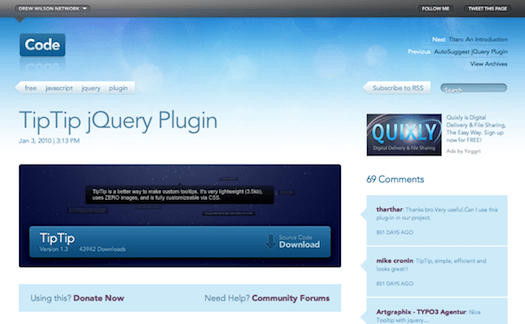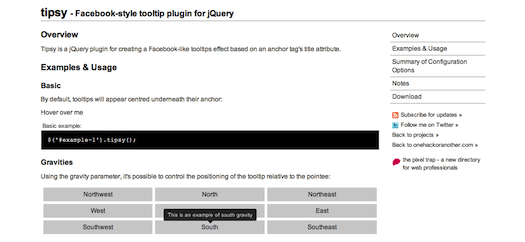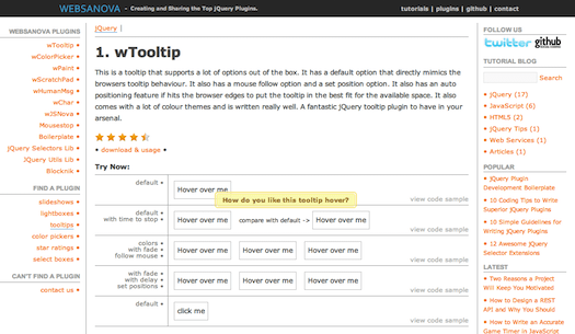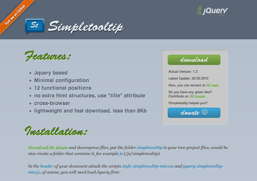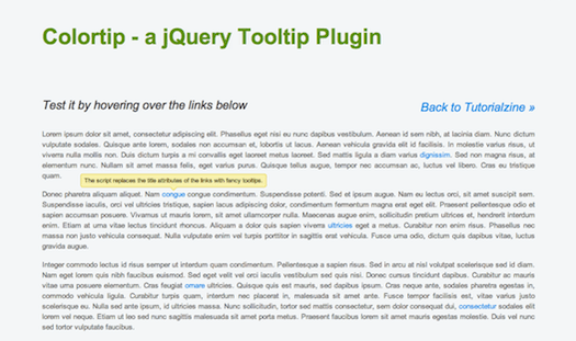 在web開發當中,工具提示條對於完善web網站的用戶體驗至關重要。title屬性通常是用來幫助用戶了解顯示鏈接的信息。默認情況下用於一個訪客來說真是不好找,因為鼠標放上去他才可能顯示。如果做一個像電子商務網站的注冊頁面,頁面包含這麼多的信息,如何讓用戶可以把鼠標懸停鏈接他自動彈出醒目的信息。這個使用jquery強大的工具提示插件在這種情況下是可以的完美實現的。你需要做的就是添加title屬性指定的類名。在這篇文章中,我收集了17個和新鮮的jQuery的工具提示插件,他們都是輕量級的工具提示插件,他們幾乎沒有相同的功能,你需要下載下面為他們配置類或者ID,就可以使用。
