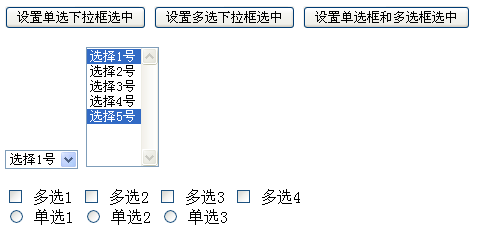 <input type="button" value="設置單選下拉框選中"/>