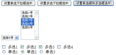 <input type="button" value="設置單選框和多選框選中"/>