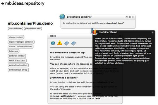 在建立功能齊全,完全可換膚的容器,這是一個有用的插件。容器可以設置拖動,調整大小,可折疊和可最小化。